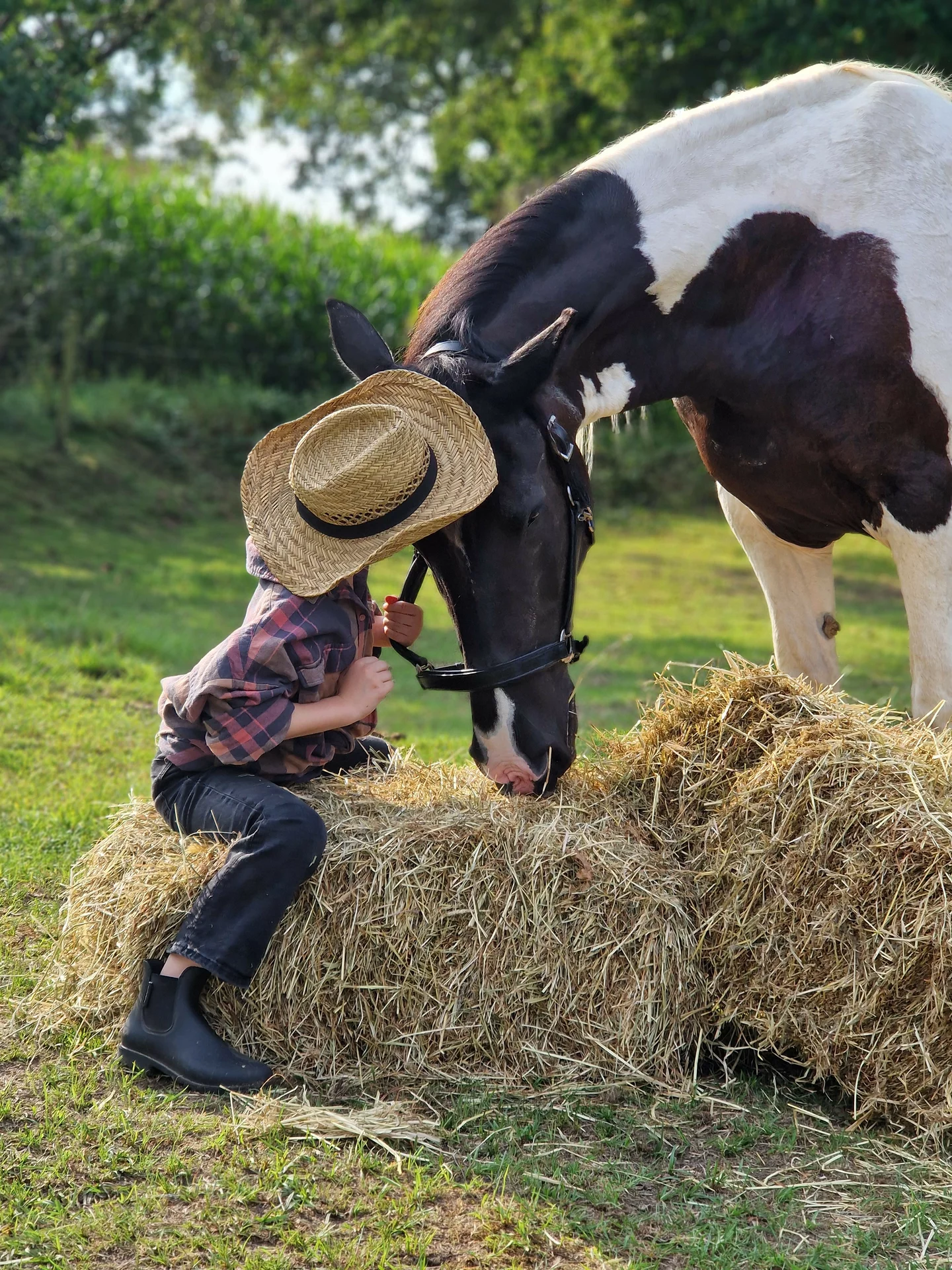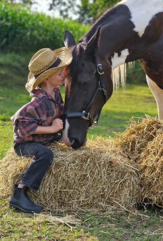 Vor einigen Jahren zog für eine kurze Zeit ein kleiner, trauriger, etwas verwahrloster Ponywallach bei uns ein. Sein Name war Batman und er hatte schon einiges in seinem Leben erlebt. Vieles davon war leider nicht gut für ihn. Nach einer gewissen Rekonvaleszenzzeit, blühte er förmlich auf. Er wurde mutiger, neugieriger und immer schöner. Allerdings sein Stressfaktor, wenn bei uns viel Trubel ist, blieb leider hoch. So das wir uns in seinem Sinne und für sein Wohlergehen, um einen Bestplatz auf Lebenszeit umgeschaut haben. Lange Rede kurzer Sinn, den haben wir gefunden ***** Sterne Deluxe einfach super. Als wir Batman, mal wieder einen Besuch abstatteten, fiel uns Sammy auf und wir waren direkt schockverliebt. Allerdings war sie damals leider nicht für uns zu haben. Doch die Zeit hat es ja manchmal an sich, Dinge zu verändern. Und so begab es sich, dass sich die Lebensumstände bei Sammy so sehr geändert haben, dass wir sie im März 2023 endlich zu uns holen konnten. Sie hat die Herzen aller im Sturm erobert. Schnell konnte sie eine große Unterstützung für Peter sein, der auf Grund seiner Krankheit nicht mehr so viele Aufgaben übernehmen konnte wie früher. Sammy hat ein riesengroßes Herz, ist sehr mutig und sehr sehr Menschenbezogen. Jeden Tag freuen wir uns darüber im März 2023 diese Entscheidung gefällt zu haben. Sie ist der absolute Gewinn in unserem Team.