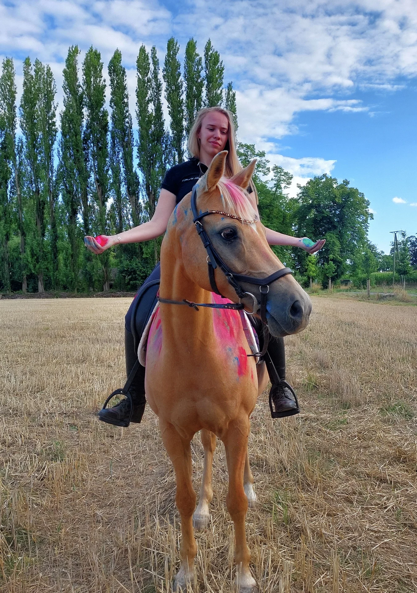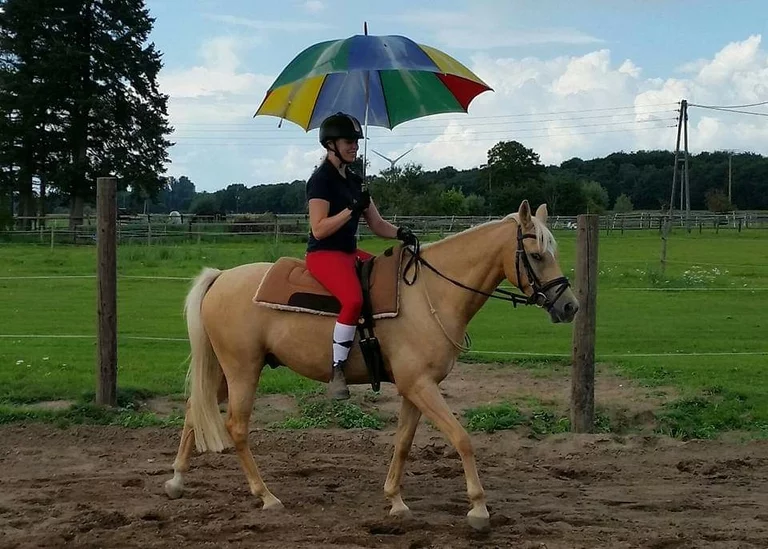 Er besticht durch sein wunderschönes Äußeres und sein herausragendes Gangbild, was er mittlerweile bei vielen Turnieren unter Beweis gestellt hat. Unser "Barbiepferd" ist immer lustig, lieb und gut gelaunt.