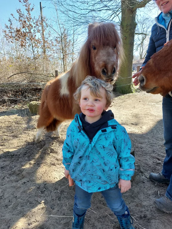 Kleinsten auf dem Reitplatz. Er ist für jeden Spaß zu
