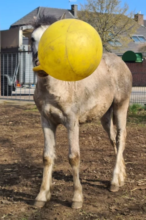"Fohlencamp", zu einem weiteren jungen Hengst in seinem Alter.